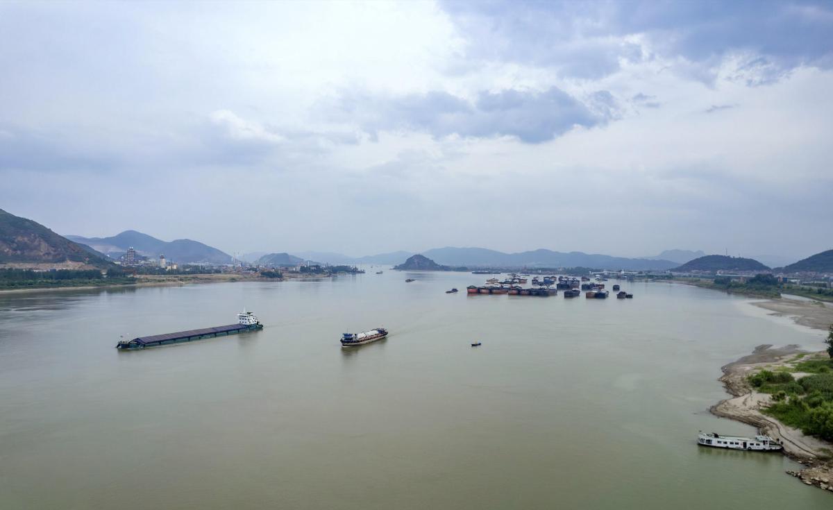 6日,長(zhǎng)江富池段,船舶載著煤炭、砂石等貨物往來(lái)于江面,構(gòu)成一條流動(dòng)的“高速公路”。