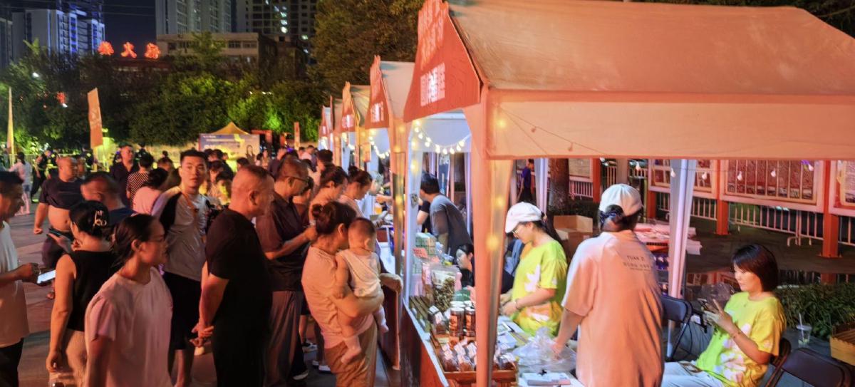以賽事促消費,以賽事帶文旅。比賽前夕,體育館外,特別設(shè)置了超大型露天KTV——“收麥計劃”音樂節(jié),臺上臺下同聲合唱,讓觀眾融入此次籃球盛宴中,共享體育運動的快樂。在消費市集上,擺有幾十種大冶本土特色產(chǎn)品,多種精美的文創(chuàng)制品讓人目不暇接,金牛麻花、殷祖白茶、國啟風(fēng)干魚、黃金湖甲魚等特色展位人頭攢動。