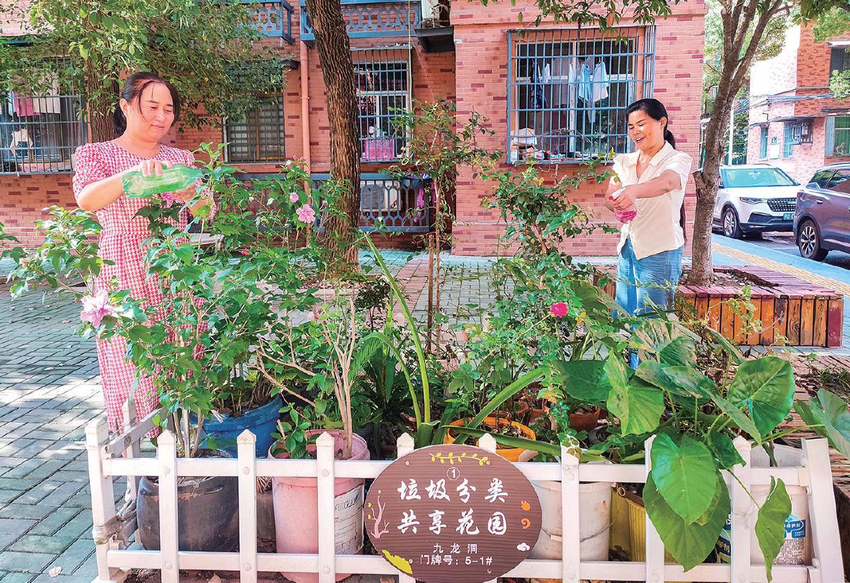 昨日,開發(fā)區(qū)·鐵山區(qū)九龍洞社區(qū)居民和垃圾分類工作人員正在給共享花園的花卉澆水。據(jù)了解,開發(fā)區(qū)·鐵山區(qū)城維園林綠化公司共在鐵山街道各社區(qū)建設(shè)了垃圾分類共享花園50余個(gè),旨在鼓勵(lì)居民共同參與垃圾分類,推動(dòng)綠色生活方式的普及。