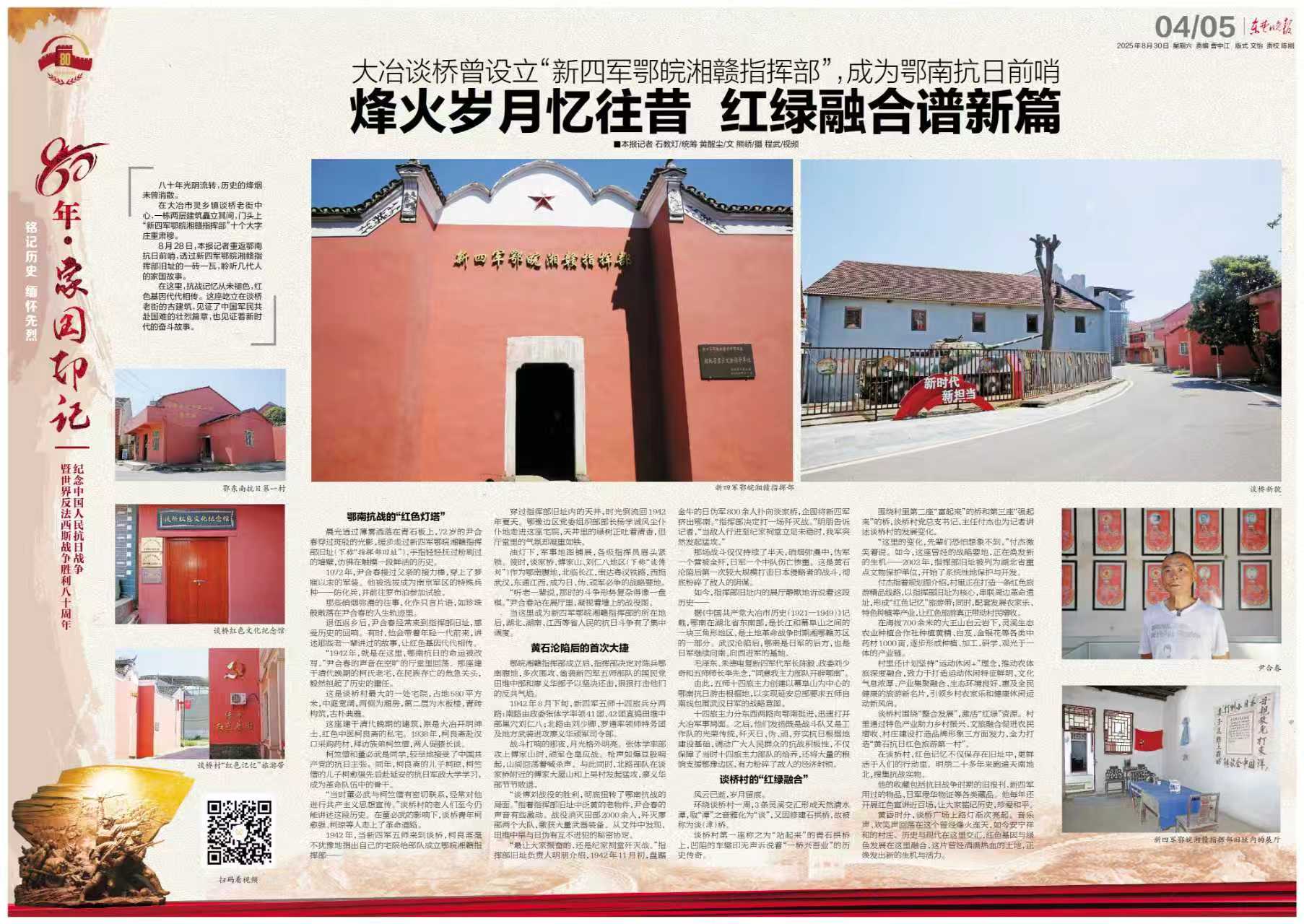 8月28日,本報記者重返鄂南抗日前哨,透過新四軍鄂皖湘贛指揮部舊址的一磚一瓦,聆聽幾代人的家國故事。
