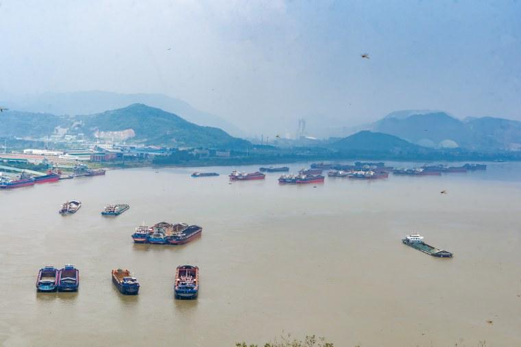 登半壁山遠眺,長江煙波浩渺,航道船舶來往不斷