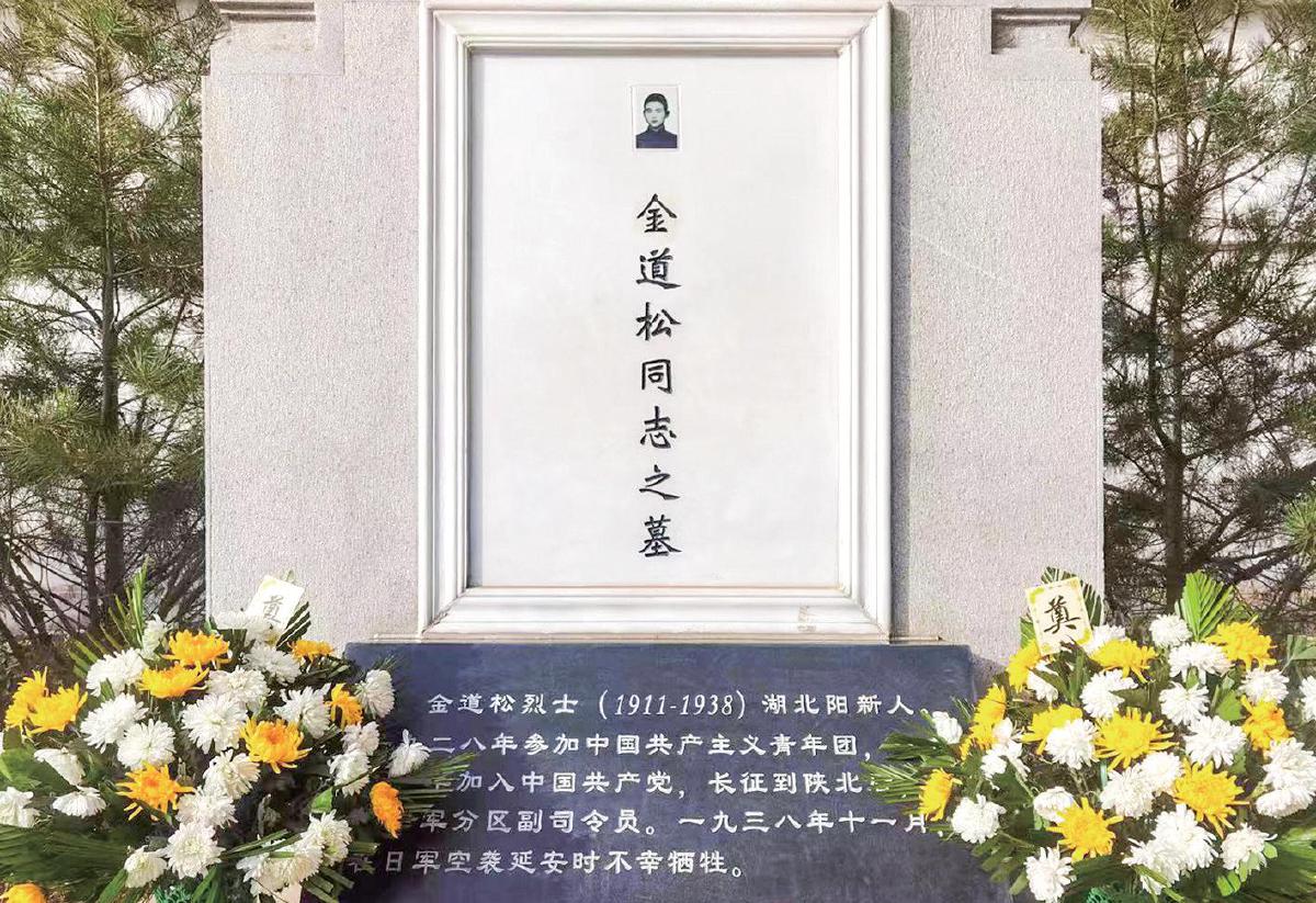 1938年11月20日上午,日軍出動15架飛機空襲延安。當時正在中央黨校學習的金道松,在回關中途中遇敵機襲擊,中彈后不幸犧牲。年僅27歲的他,成為1938年犧牲的八路軍12位高級將領之一。