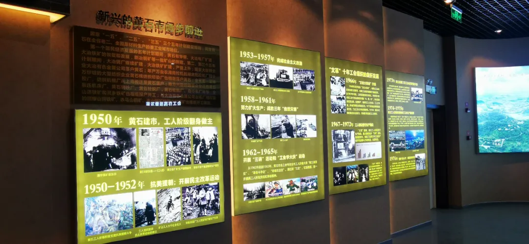 從序廳進(jìn)入,便是千年?duì)t火廳,展現(xiàn)的是黃石地區(qū)從3000年前的銅綠山古銅礦開采冶煉,到清末洋務(wù)運(yùn)動在黃石開辦大冶鐵礦、大冶鋼鐵廠、湖北華記水泥廠、大冶電廠、幾個(gè)大型煤礦等工業(yè)發(fā)展歷史。